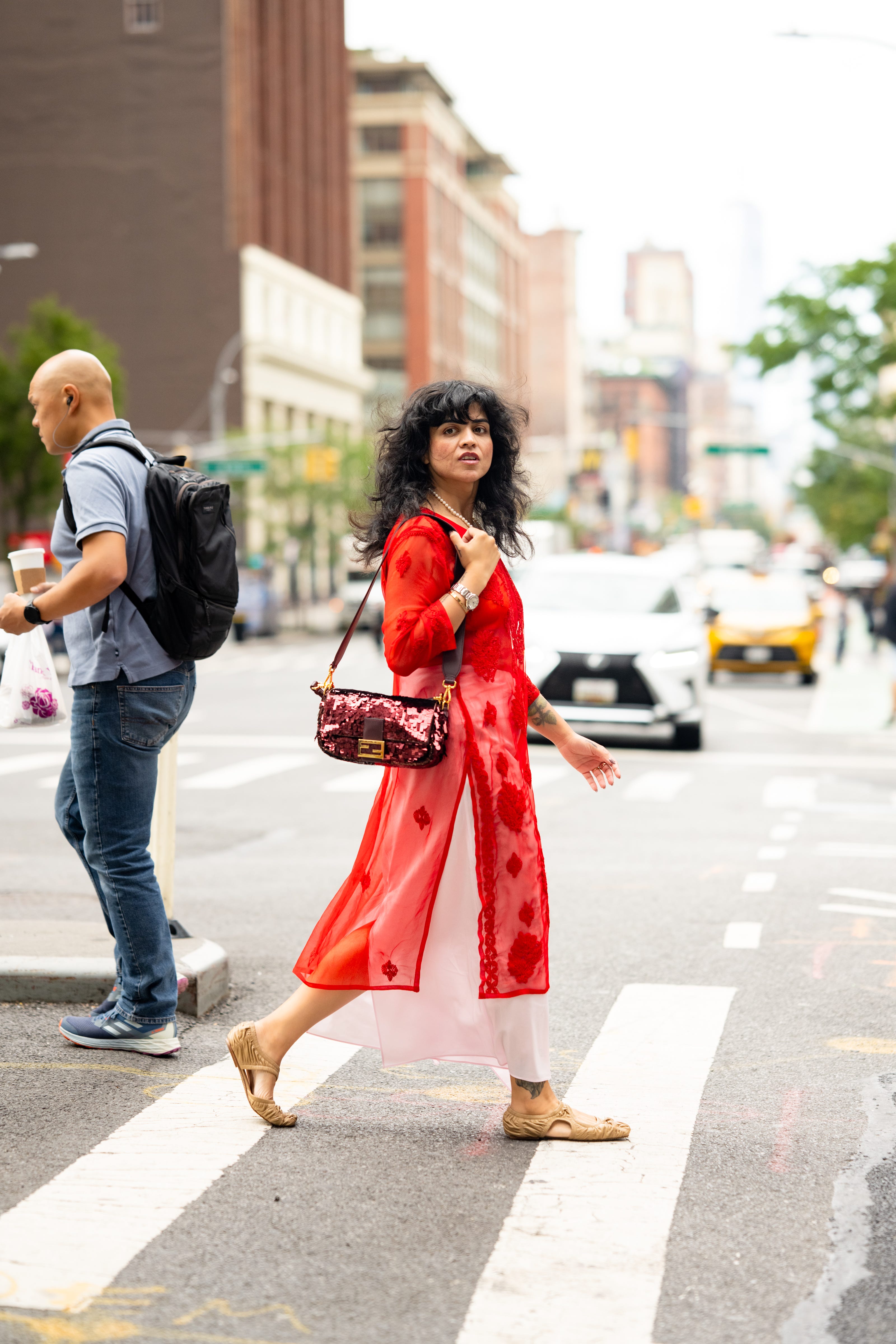 It wasn’t a big production. No makeup chair, no racks of borrowed clothes, no team buzzing around me. Just me, a (brilliant!!) photographer, and the streets of New York during fashion week. People rushing past with their own agendas while I paused in front of brick walls, crosswalks, scaffolding. A low-key shoot, nothing glossy. Except for the feeling: this one was mine.